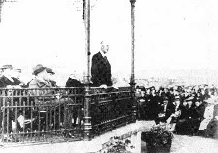 Lord Chelmsford, chairman of the Welfare Committee, speaking at the park opening. Mungo Mackay is seated directly behind him.