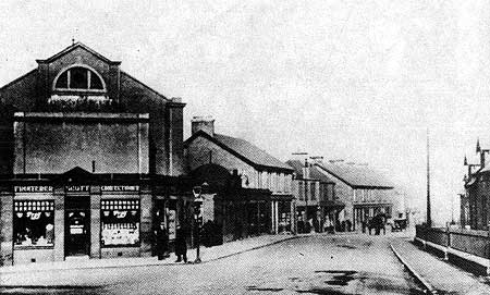 Top of the village, 1930s, with picture house and Jenny Scott's shop on the left.