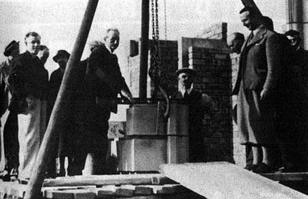 Council laying the foundation stone of the council offices,