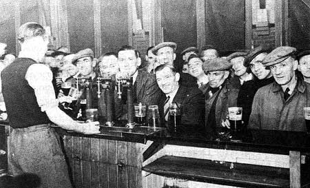 | Customers at the jug bar, 1949. L to R: Jimmy