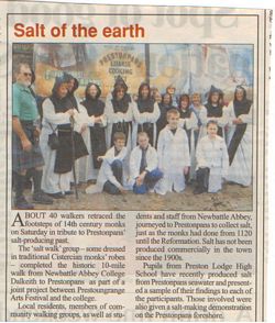It was the Arts Festival's great pleasure to welcome the intrepid 10 miles 'walkers' from Newbattle Abbey College when they arrived on The Gothenburg foreshore in Prestonpans. As the press cuttings below tell, the walk followed the old route taken by Cistercian monks for many hundreds of years from 1189 until the Reformation and the closure of the Abbey.