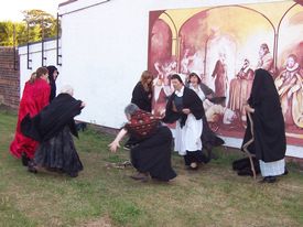 Church on the quayside, Auldhammer Suite in the church, paper boats in a long gone harbour, pirates at Sam Burns' yard, mural re-enactors at the pithead, sundowner music, silk painting, Tam O'Shanter or Gelie Duncan's Reel, flying kites, paellla and Gala Queens to reign amongst us!