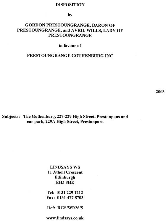 Chronology of The Prestoungrange Gothenburg 1901-2002