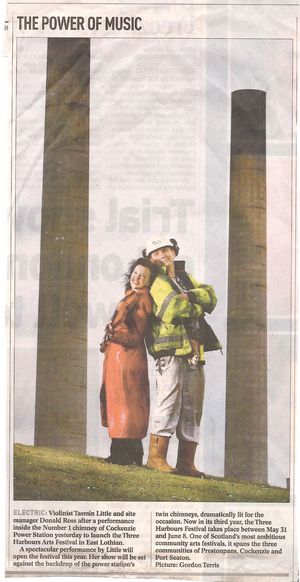 Internationally acclaimed violinist, Tasmin Little is to be one of many major artists involved at the Three Harbours Festival. She will be performing in and about Cockenzie Power Station which has fantastic indoor acoustics!