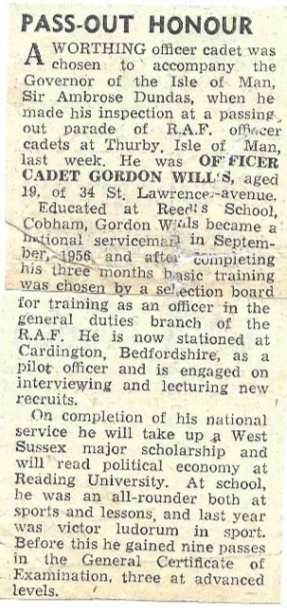 Highpoint at RAF Jurby Isle of Man as I have the honour …. final appearance as Officer Cadet and next as Pilot Officer; story line in Worthing Gazette below.
