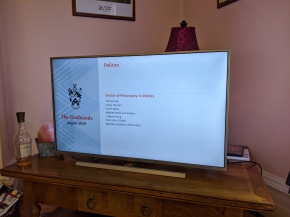 Dr. Mathew Certified on YouTube at 1pm. So we logged on and there it all was, with graduands singing, a new Honorary Doctor renowned for her studies of the role of governments in innovation and, amongst the Department of Politics our own newly minted Dr Mathew Wills, BA, MBA, MSc, PhD, FCA