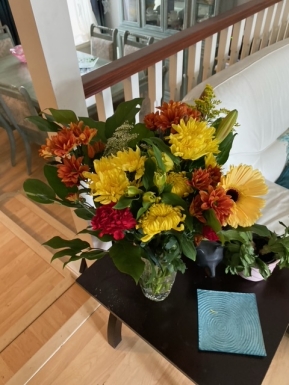 It's also Joan Wills in Edmonton's birthday this week and although she was short changed with candles at Stephen and Wendy's party she enjoyed flowers and a Chinese Take Out, one of her favourites, at home on the day itself. Anne's been out and about to more parties this last four weeks than usual; she'll be getting a reputation!