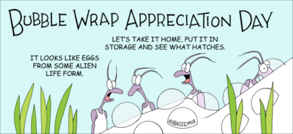 It was Bubble Wrap Appreciation Day last Monday. It's always the last Monday on January which this year clashed with Burns' Night so we carried it forward …. it's got a fascinating tale to relate but first why the commemoration? It was so designated after a radio station in Bloomington, Indiana, received a shipment of wrapped microphones which, after being unwrapped and installed, inadvertently broadcast the sound of their wrappings being popped by staff. Its invention was even more bizarre …. Alfred Fielding was co-inventor of Bubble Wrap with his business partner Marc Chavannes, a Swiss chemist. They were trying to create a textured wallpaper in 1957 that would appeal to the burgeoning Beat generation. They put two pieces of plastic shower curtain through a heat-sealing machine but were disappointed—at first—by the results: a sheet of film with trapped air bubbles. However they did not totally dismiss their failure receiving the first of several patents for the process and equipment for embossing and laminating materials. Then they turned their minds to thinking of uses, more than 400 in fact. Greenhouse insulation made it off the drawing board but when tested in greenhouses proved ineffective! Sealed Air Corporation which holds the registered name 'Bubble Wrap' was co-founded in 1960. The bubbles that provide the cushioning for fragile or sensitive objects are available in different sizes and multiple layers can be used to provide shock and vibration isolation. Bubble wrap is most often formed from polyethylene (LDPE) film with a shaped side bonded to a flat side to form air bubbles. Some types of bubble wrap have a lower permeaton barrier film to allow longer useful life and resistance to loss of air in vacuums. Bubbles can be as small as 6 millimetres in diameter to as large as 26 millimetres or more. The most common bubble size is 1 centimetre. In addition to protection available from the air bubbles in the plastic the material itself can offer some forms of protection - for example when shipping sensitive electronic parts and components a wrap is used that dissipates static charge thereby protecting the sensitive electronic chips from static which can damage them. One of the earliest widespread uses came in 1960 with the shipping of the new IBM 1401 computers to customers, most of whom had never seen this packing material before.