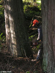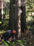 Many thanks for the above pictures taken by Mike Clark at the felling; Karl Schutz on location with Scotty Thomson throughout; and by Ted Hill of the Ladysmith & Chemainus Chronicle at Weyerhaeuser.